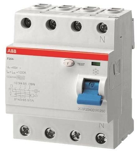 ABB F204 A-25/0.03 áram-védőkapcsoló (Fi-relé), A osztály, 4P, 25A, 30 mA (ABB 2CSF204101R1250)