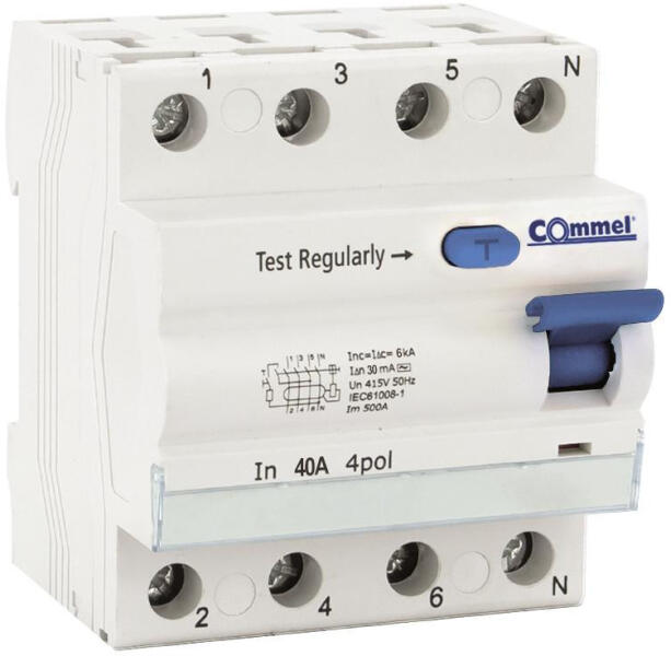 Commel Fi relé 4P 40A 30mA 6kA AC osztály áram-védőkapcsoló 470-241 (470241)