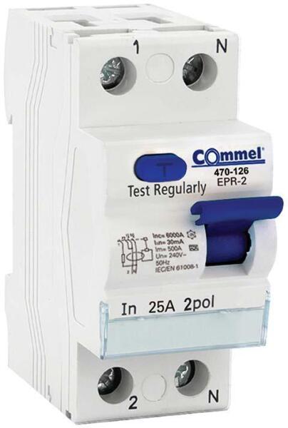 Commel Áram-védőkapcsoló, 2P 25A 30mA, A tip, 6000A (COMMEL-470-126)