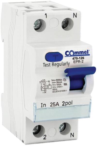 Commel Moduláris Fi-relé RCCB 2P 25A 30mA, A (470-126) (COMMEL-470-126)