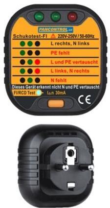 Dugalj teszter +FI-teszt 2P-ellenőrzés 220-250V LED-kijelzés PAN Schukotest FI Pancontrol