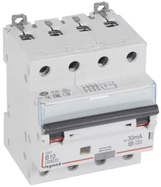 Legrand DX3 4P kombinált áram-védőkapcsoló B10 6000A / 10kA 30mA A típus (411223) (411223)