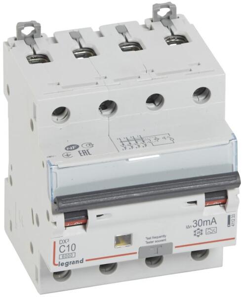 Legrand 411233 DX3 4P kombinált áram-védőkapcsoló C10 6000A / 10kA 30mA A típus