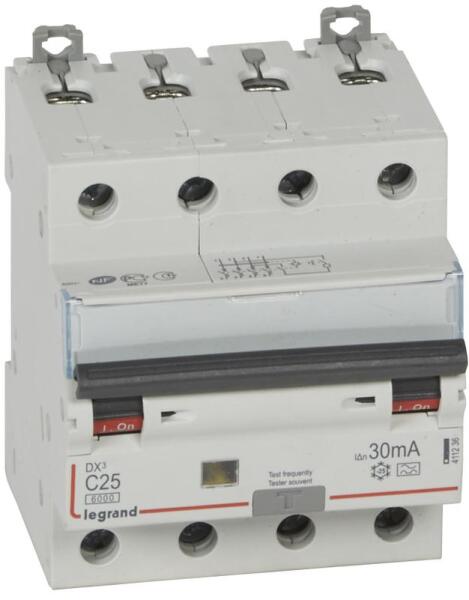 LEGRAND DX3 4P kombinált áram-védőkapcsoló C25 6000A / 10kA 30mA A típus (411236)