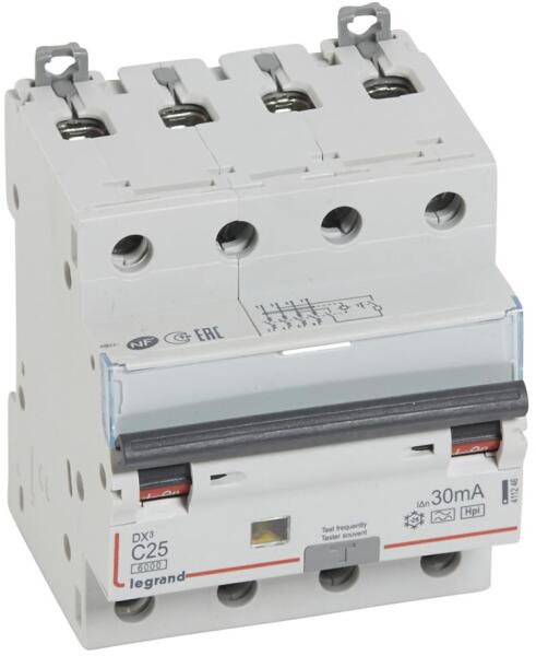 LEGRAND DX3 4P kombinált áram-védőkapcsoló C25 6000A / 10kA 30mA A-Hpi (411246)