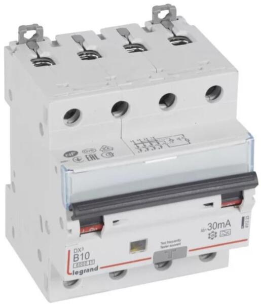 DX3 4P kombinált áram-védőkapcsoló B13 6000A / 10kA 30mA (LEG-411356)