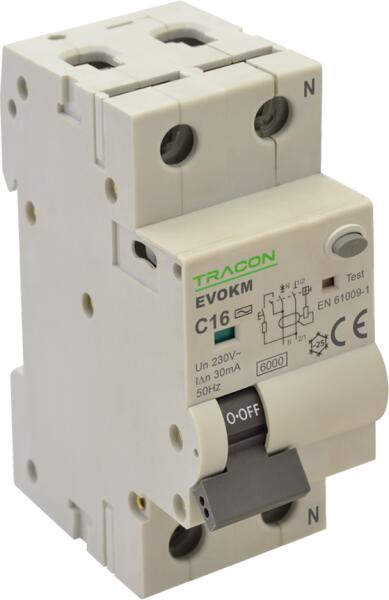 TRACON EVOKM2B6303 Kombinált védőkapcsoló, 2P, 2modul, B karakterisztika (EVOKM2B6303)
